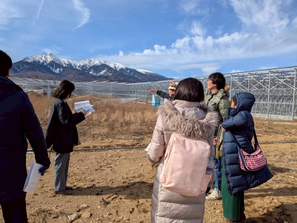 2日目は、長野県南牧村にある「野辺山営農ソーラー」を視察しました。本事業は、長野県内最大級、かつ日本最高地点に位置する営農型太陽光発電であり、約3ヘクタールの農地を活用して、農業と再生可能エネルギー発電を両立させる取り組みです。