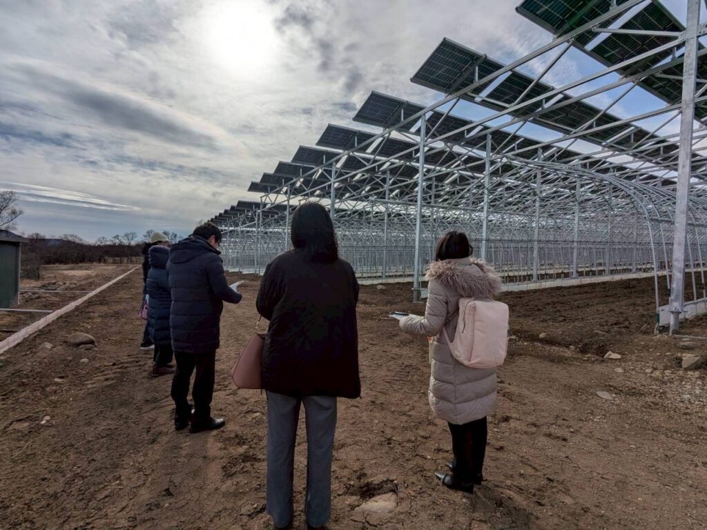 発電設備の下では、ほうれん草やブルーベリーなどの栽培が行われており、売電収入を農業経営の安定化や農地再生に活用しています。営農と発電を対立構造で捉えるのではなく、「農地が主役」のモデルとして設計されている点が特徴的でした。(今回訪れたのが年間で一番寒い時期だったこともあり農作物があまりなく、是非また夏に来てください、とのことでした)