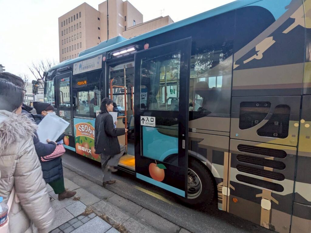 (↑長野市が運行する市内循環型のコミュニティバス「ぐるりん号」で移動)
